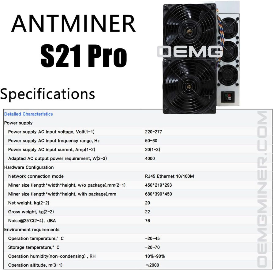 Bitmain Antminer S21 Pro 234T ASIC Bitcoin Crypto Miner