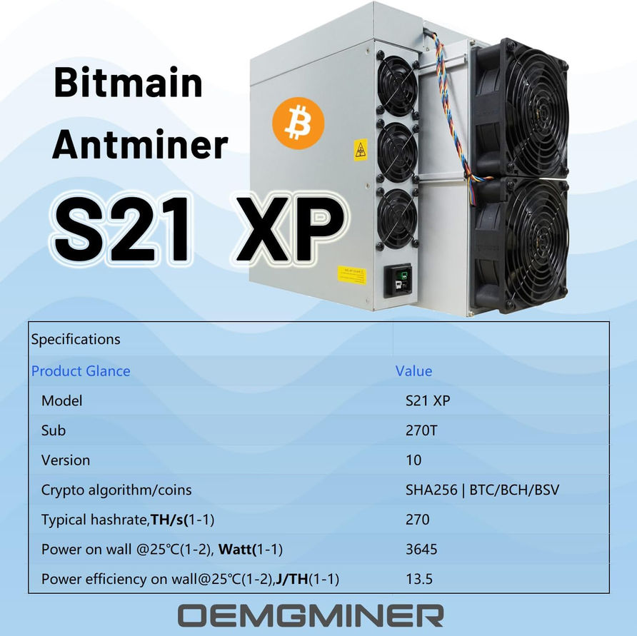 The Antminer S21 XP delivers a massive 270 TH/s hash rate for high-performance Bitcoin mining operations. Its industry-leading efficiency of 13.5 J/TH optimizes energy consumption to maximize profitability. This hardware utilizes advanced ASIC technology to ensure stable and reliable processing under intense workloads. The robust air-cooling system maintains optimal operating temperatures for long-term hardware health. It features a streamlined design for easy integration into existing mining farms or home setups. Each unit includes a dedicated power cord and integrated power supply unit for immediate deployment. The durable construction is engineered to withstand continuous 24/7 operation cycles. This miner represents the cutting edge of SHA-256 algorithm hardware for serious cryptocurrency enthusiasts.