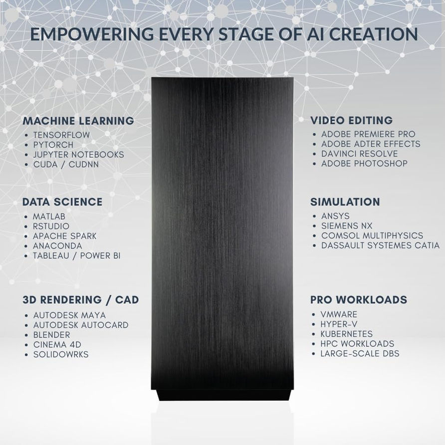 This professional-grade workstation features the AMD Ryzen 9 9950X 16-core processor for elite content creation and computational efficiency. Equipped with the NVIDIA GeForce RTX 5090 32GB GPU, it delivers unparalleled performance for AI model training, deep learning, and 4K rendering. The 96GB of high-speed DDR5 RAM enables seamless multitasking across demanding applications and massive datasets. Storage is handled by dual Gen4 NVMe SSDs totaling 6TB, ensuring rapid boot times and hyper-fast data transfers. Housed in the premium Sentinel chassis, the build includes a brushed aluminum front panel and a smoked glass side panel for a sophisticated aesthetic. Advanced thermal management and rigorous stress testing guarantee stability under heavy enterprise-grade workloads. Connectivity is future-proofed with integrated Wi-Fi 7 and versatile high-bandwidth I/O ports. Designed for local AI execution, this system maintains data privacy while avoiding recurring cloud costs. Each unit is expertly assembled in the USA and backed by a comprehensive three-year hardware warranty.