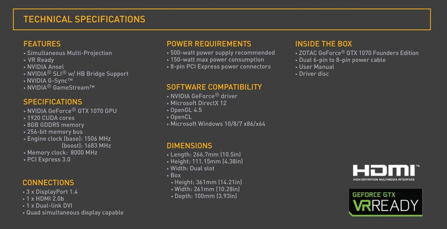 ZOTAC GeForce GTX 1070 Founders Edition 8GB GDDR5 Graphics Card